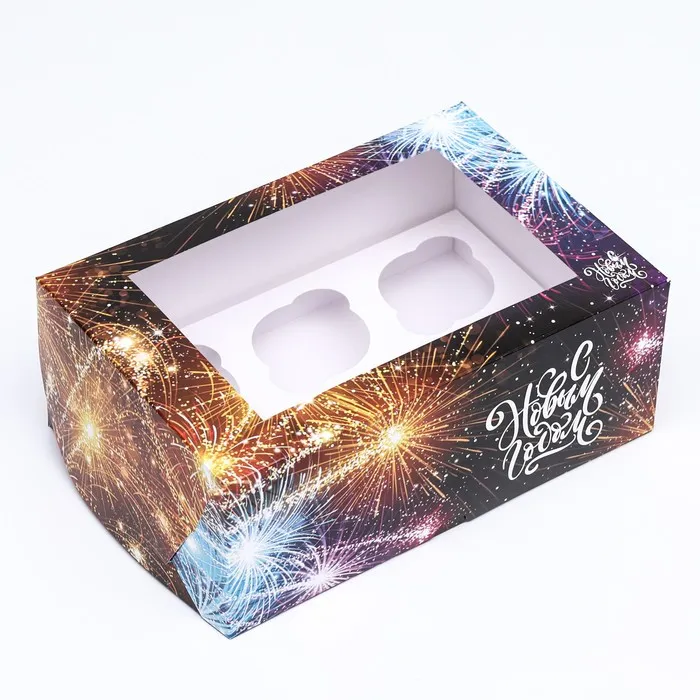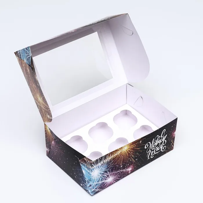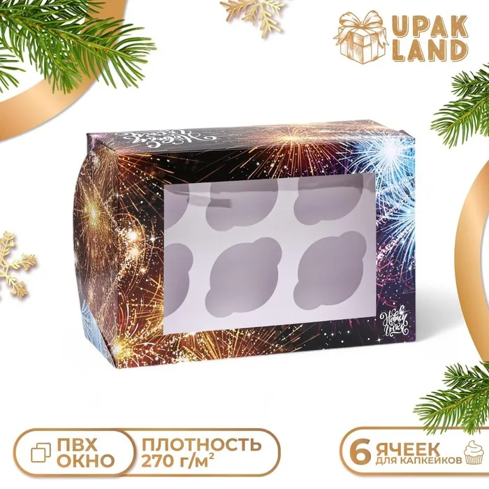 Коробка для 6 капкейков с окном подарочная новогодняя упаковка, "Новый год", 25 х 17 х 10 см. — Характеристики