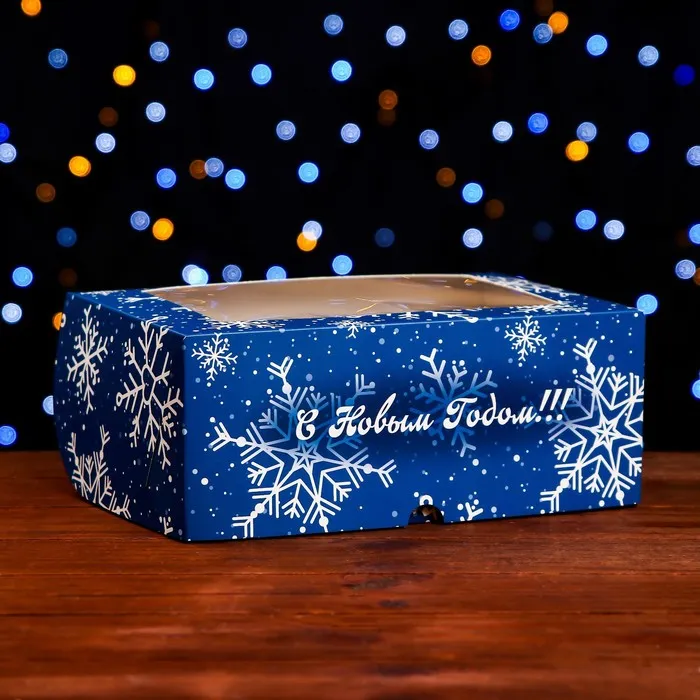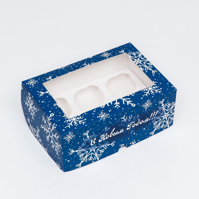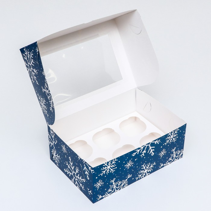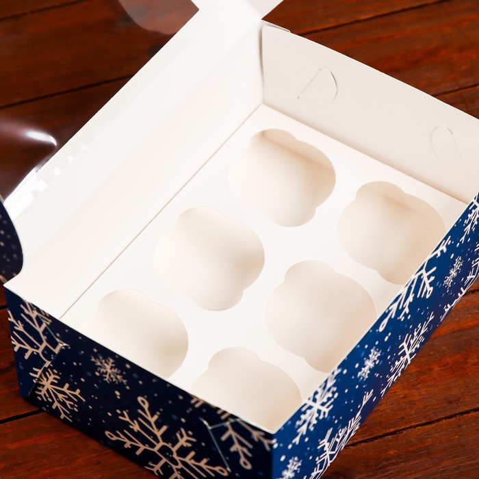 Коробка для 6 капкейков с окном «Снежинки», 25×17×10 см, упаковка — Характеристики