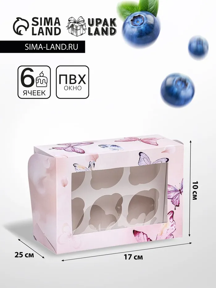 Коробка для 6 капкейков с окном, «Вдохновения», 25×17×10 см — Характеристики