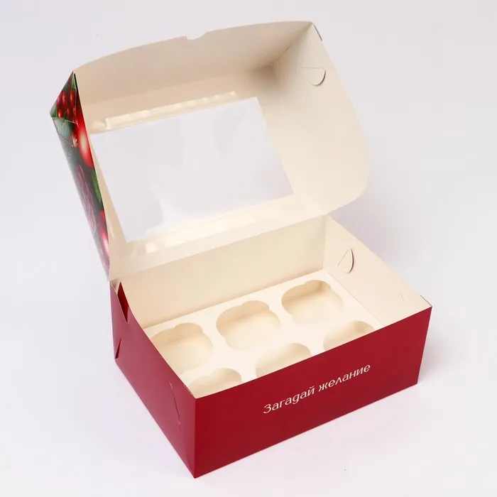 Коробка для 6 капкейков с окном «Загадай желание», 25×17×10 см, упаковка
