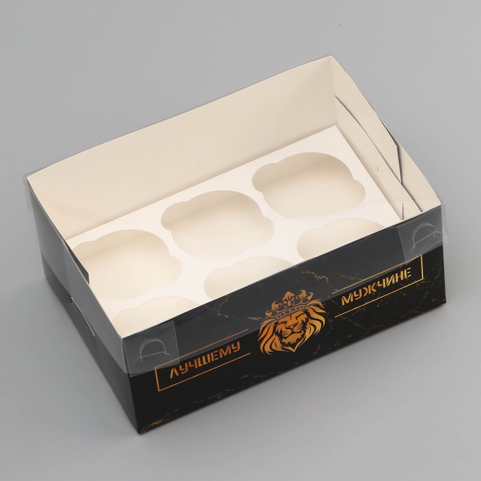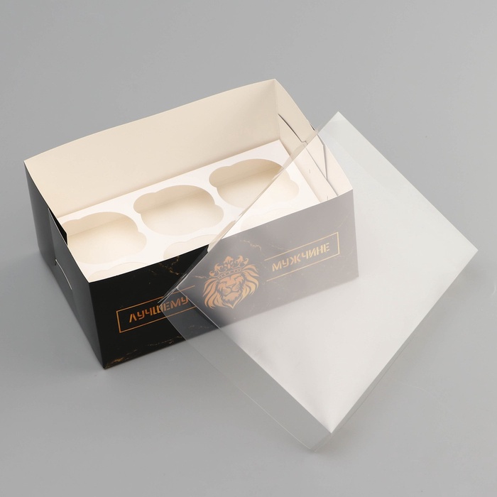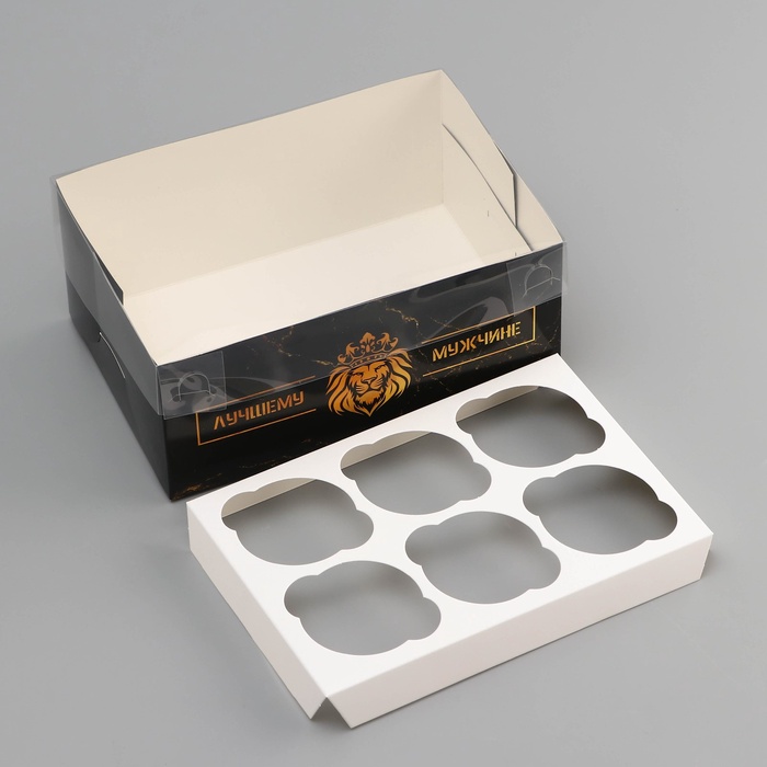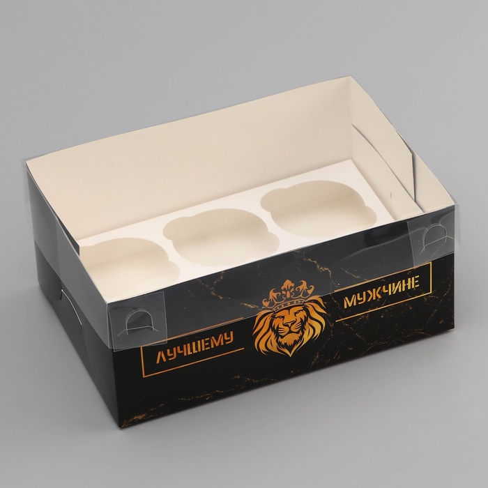 Коробка для 6 капкейков с прозрачной крышкой, «Лучшему мужчине», 23×16×10 см — Характеристики