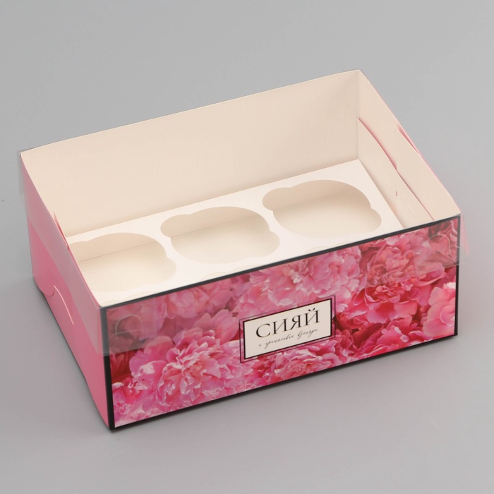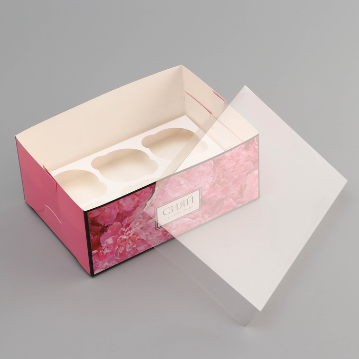 Коробка для 6 капкейков с прозрачной крышкой, «Сияй от счастья», 23×16×10 см — Характеристики