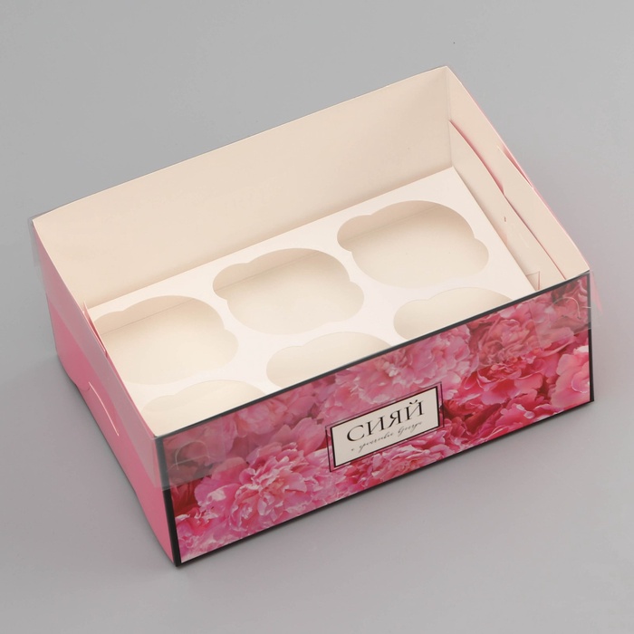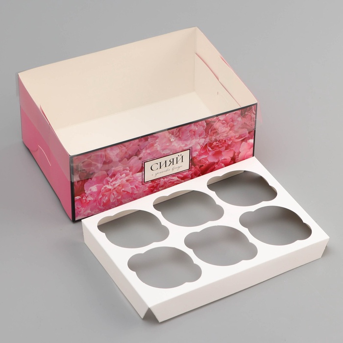 Коробка для 6 капкейков с прозрачной крышкой, «Сияй от счастья», 23×16×10 см