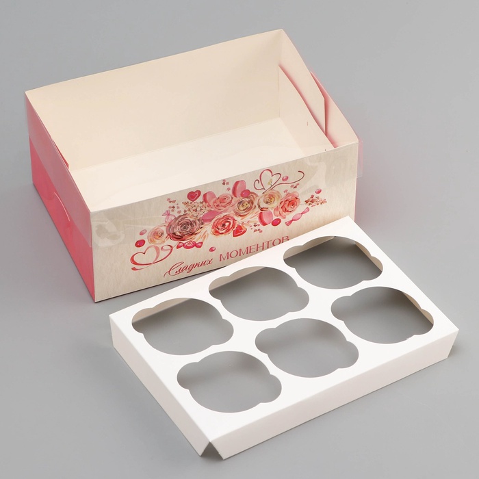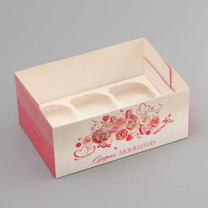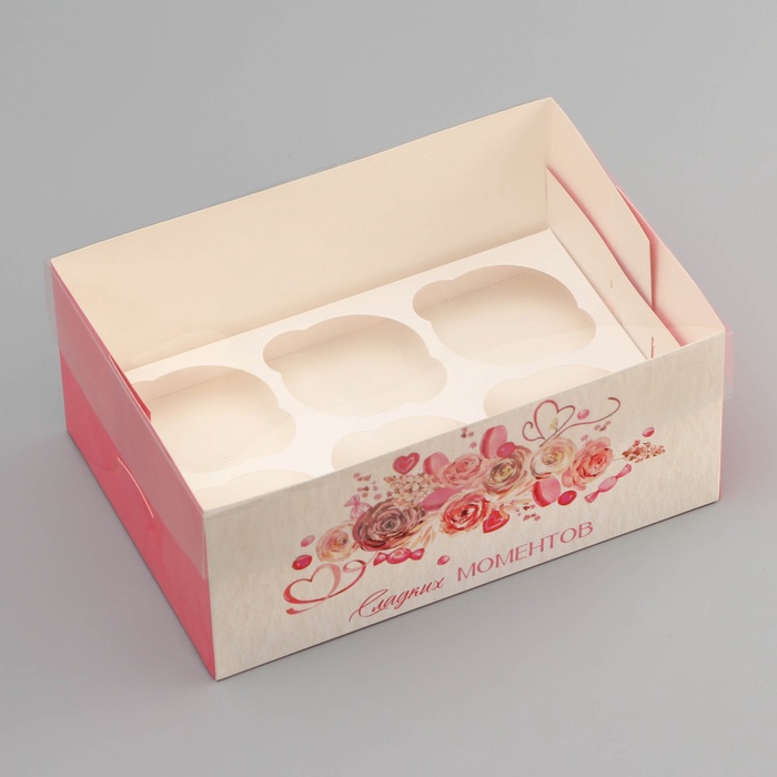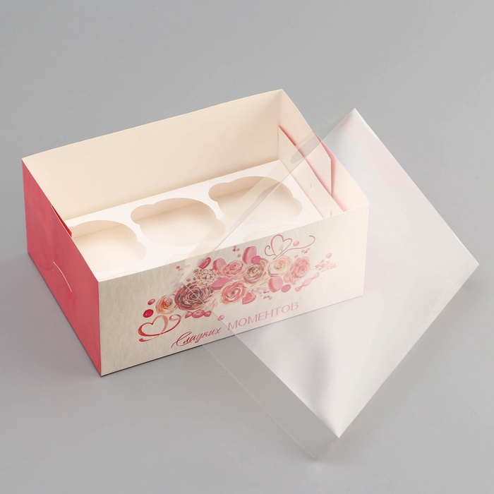 Коробка для 6 капкейков с прозрачной крышкой, «Сладких моментов», 23×16×10 см — Характеристики