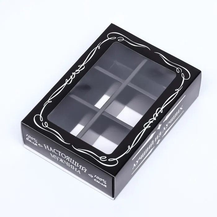 Сохрани сладкие моменты с заботой. Подарочная коробка на 6 конфет «Для настоящих мужчин» – стильный выбор для упаковки шоколадных сюрпризов и других сладостей. Идеальна для особенных случаев, таких как 23 Февраля.