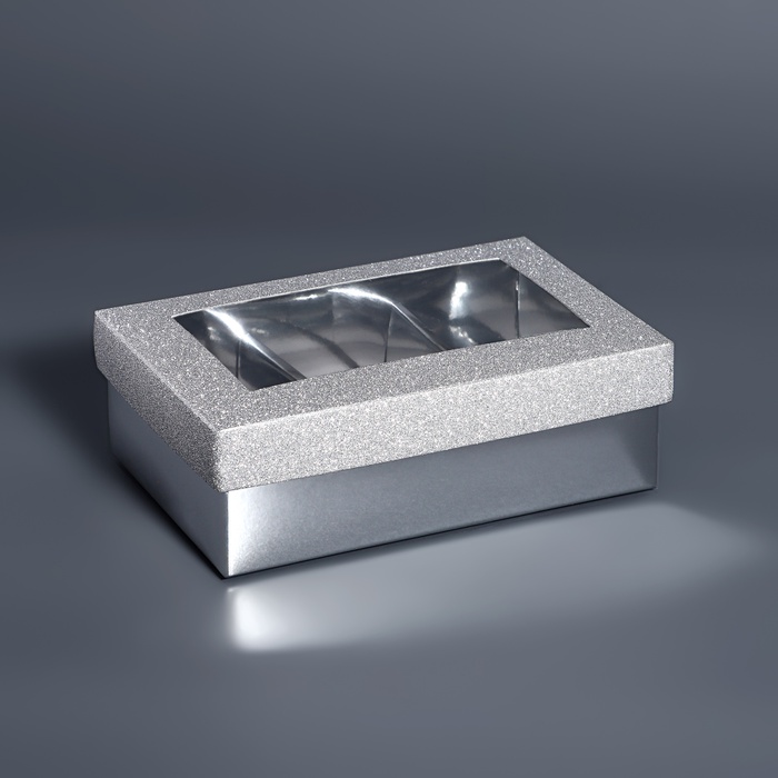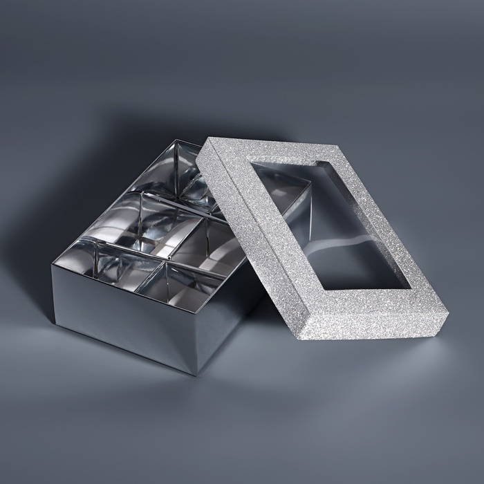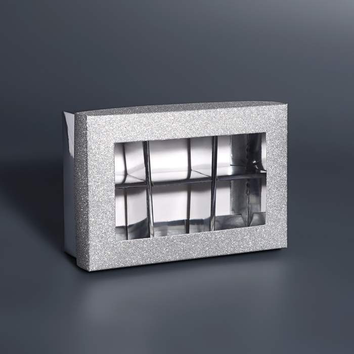 Коробка для 6 конфет серебро глиттер, 12×8.5×4 см — Характеристики