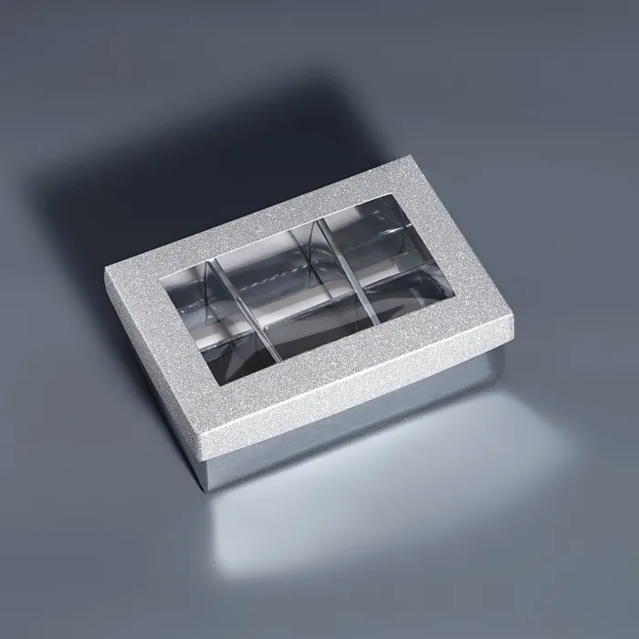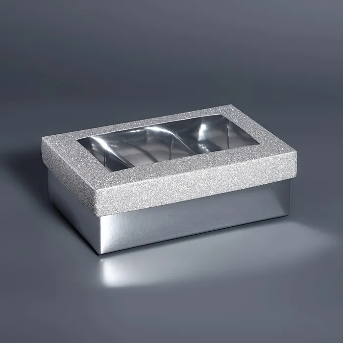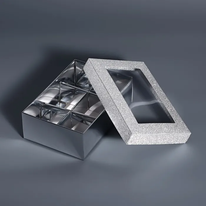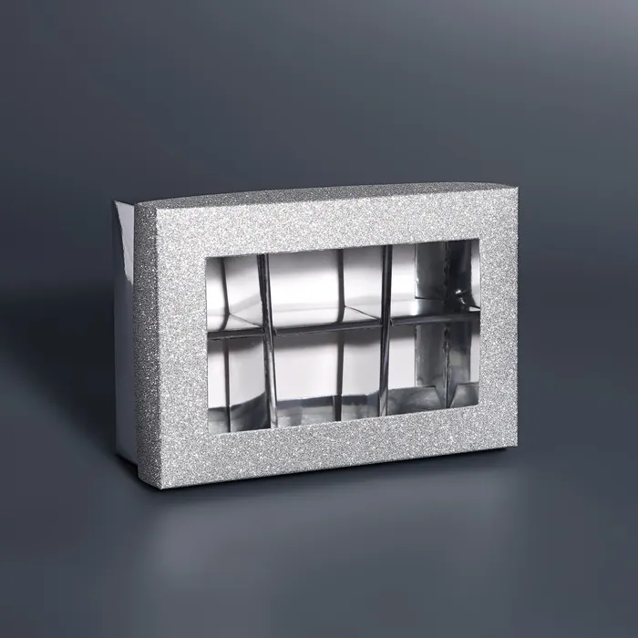 Коробка для 6 конфет серебро глиттер, 12×8.5×4 см