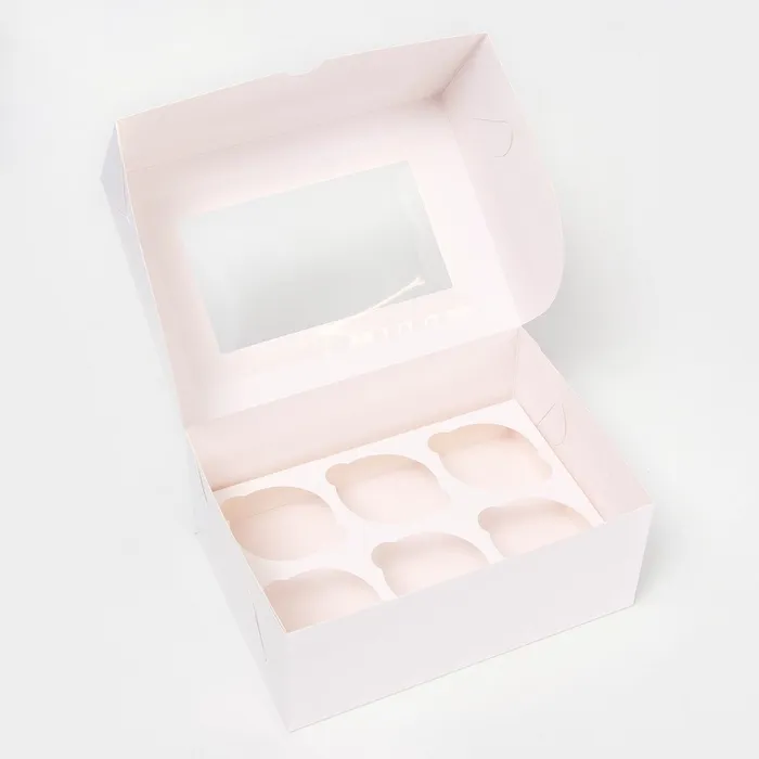 Упаковка предназначена для упаковки и транспортировки 6 мини-капкейков. Она имеет достаточную вместимость для того, чтобы защитить продукты от повреждений и сохранить их свежесть.