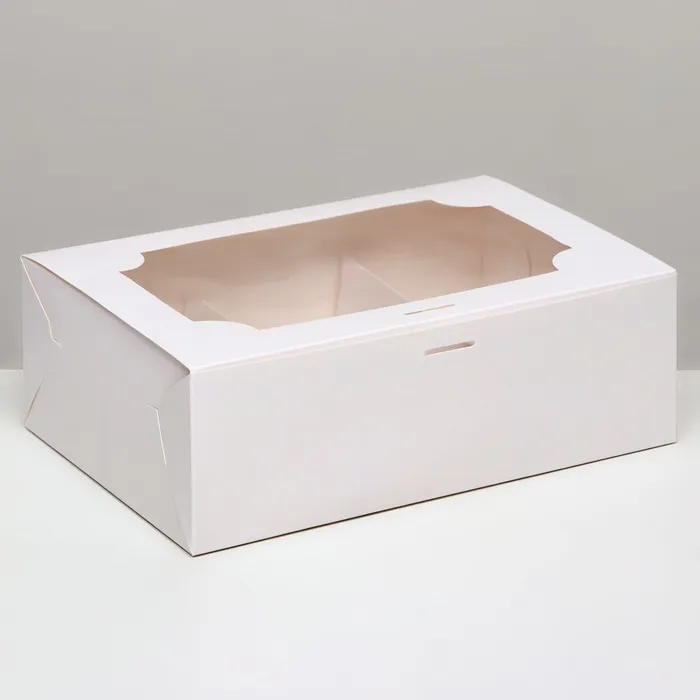 Коробка для 6 пирожных, белая, 24×16×8 см — Характеристики