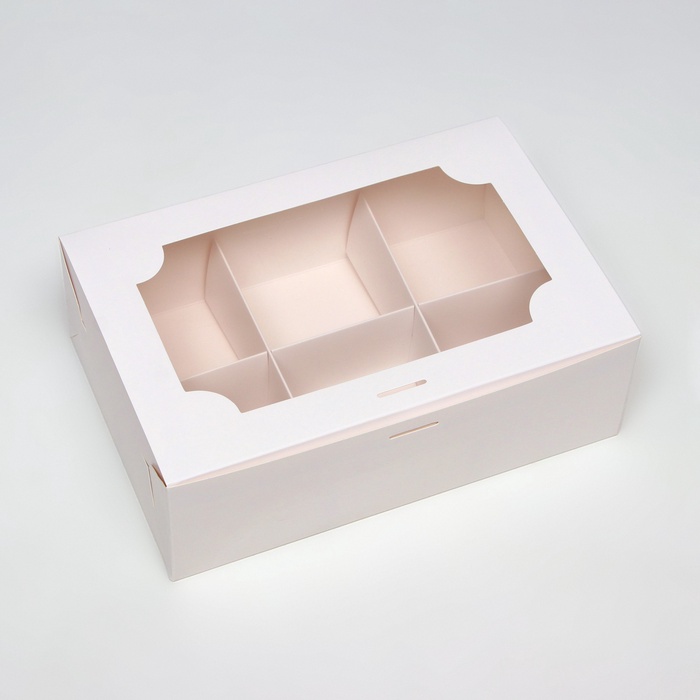 Коробка для 6 пирожных, белая, 24×16×8 см — Характеристики