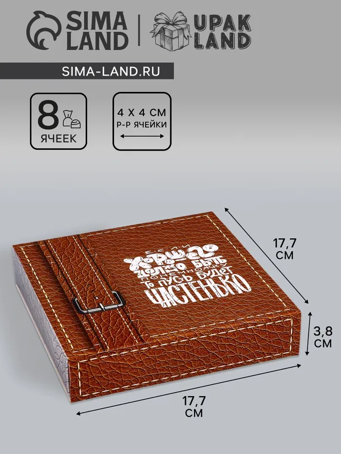 Коробка для 8 конфет и шоколада — это идеальное сочетание элегантности и функциональности, созданное для тех, кто ценит сладкие моменты в жизни. Эту коробку размером 17,7 х 17,8 х 3,8 см можно с гордостью представить на любом празднике, будь то день рождения, свадьба или корпоративное мероприятие.