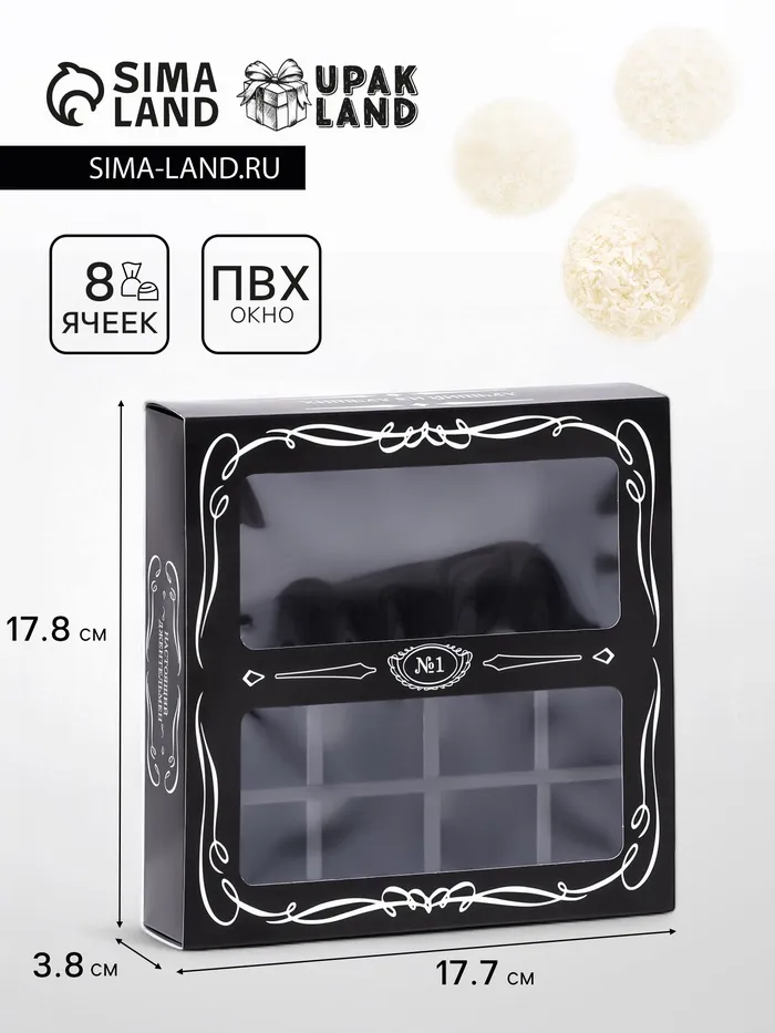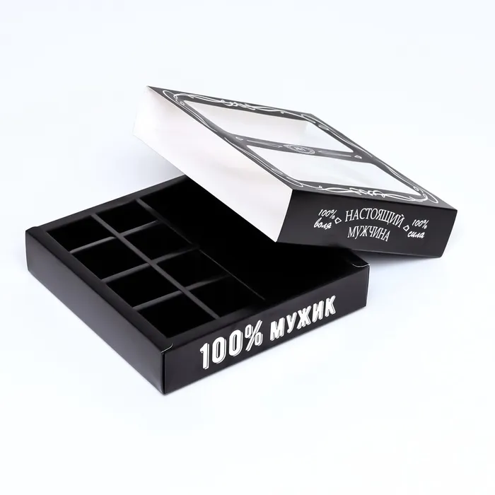 Коробка для 8 конфет шоколад, с окном, «Настоящий мужчина» 17.7×17.8×3.8 см — Характеристики