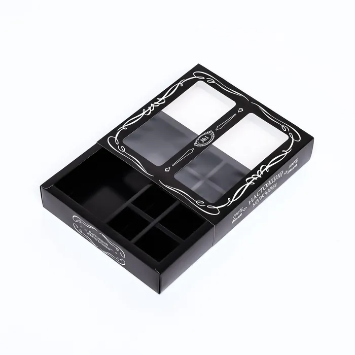 - Окно: Прозрачное окно на верхней части коробки даёт возможность увидеть содержимое, добавляя элемент интриги и привлекая внимание покупателей.