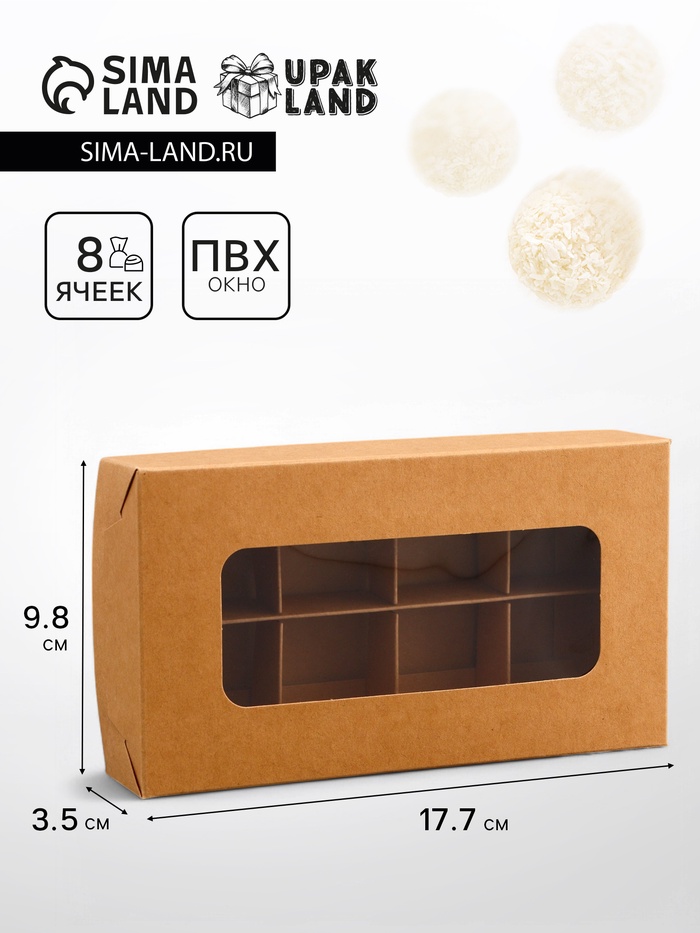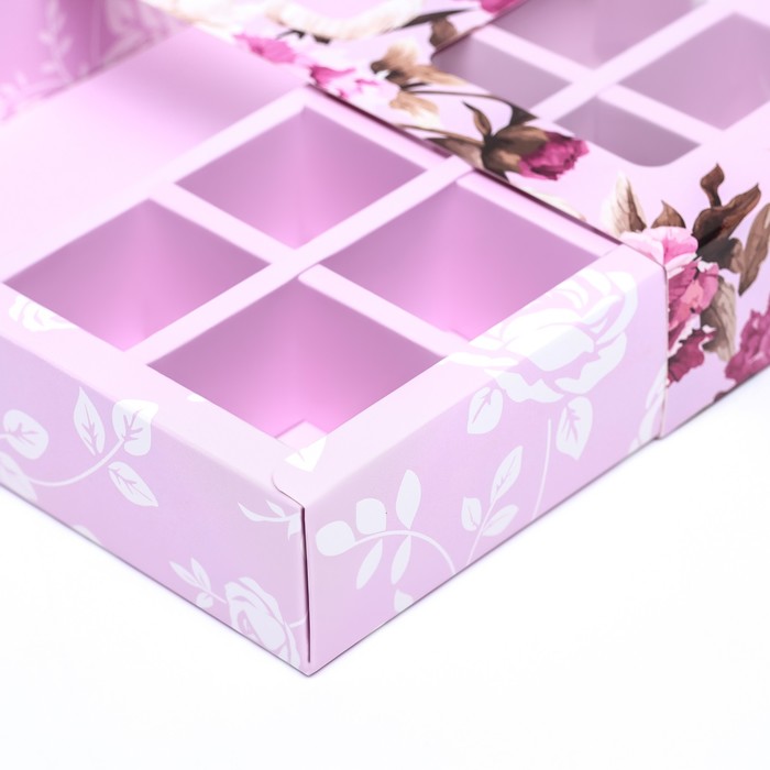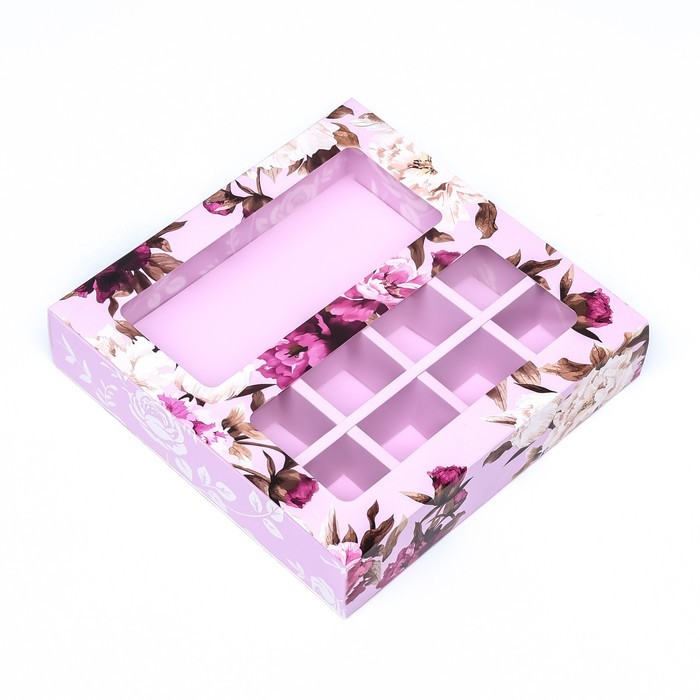 Коробка для 8 конфет шоколад, с окном, «Розы» 17.7×17.8×3.8 см Кондитерская упаковка — Характеристики