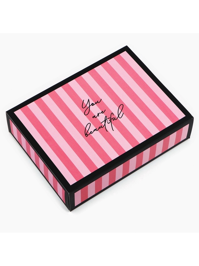 - Материалы: Изготовлена из качественного плотного картона, обеспечивающего надёжную защиту конфет и шоколада во время транспортировки.