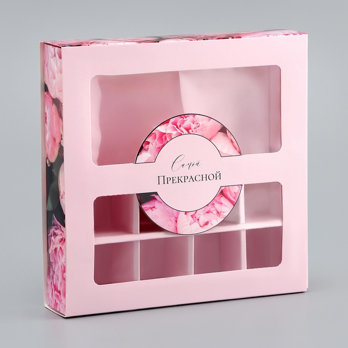 Коробка для 8 конфет + шоколад, с окном «Самой прекрасной», 17.7×17.8×3.8 см Кондитерская упаковка — Характеристики