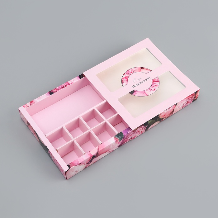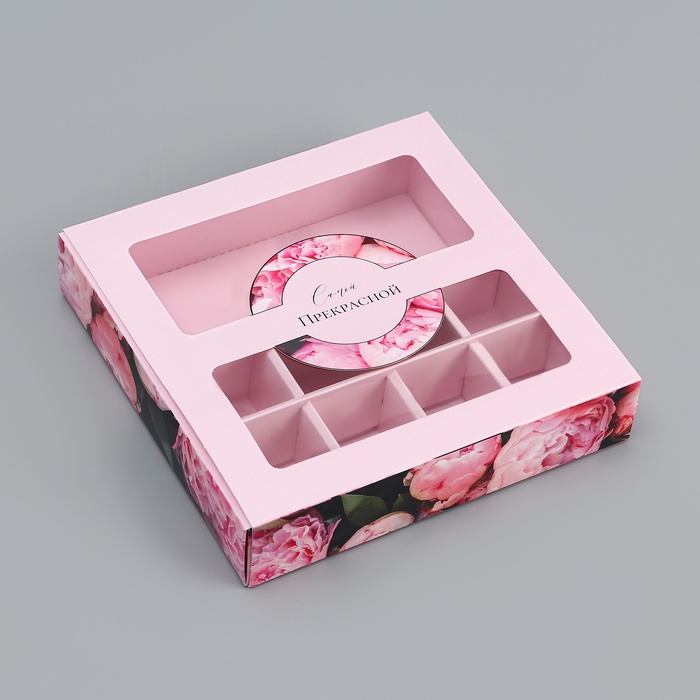 Коробка для 8 конфет + шоколад, с окном «Самой прекрасной», 17.7×17.8×3.8 см Кондитерская упаковка