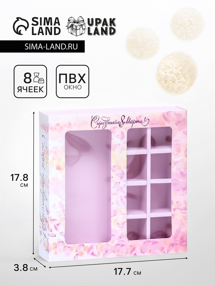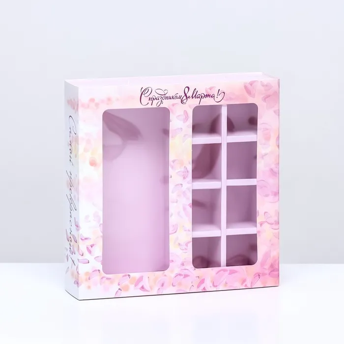 Коробка для 8 конфет шоколад, с окном, «Самой прекрасной» 17.7×17.8×3.8 см — Характеристики