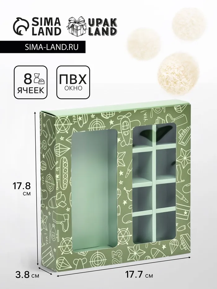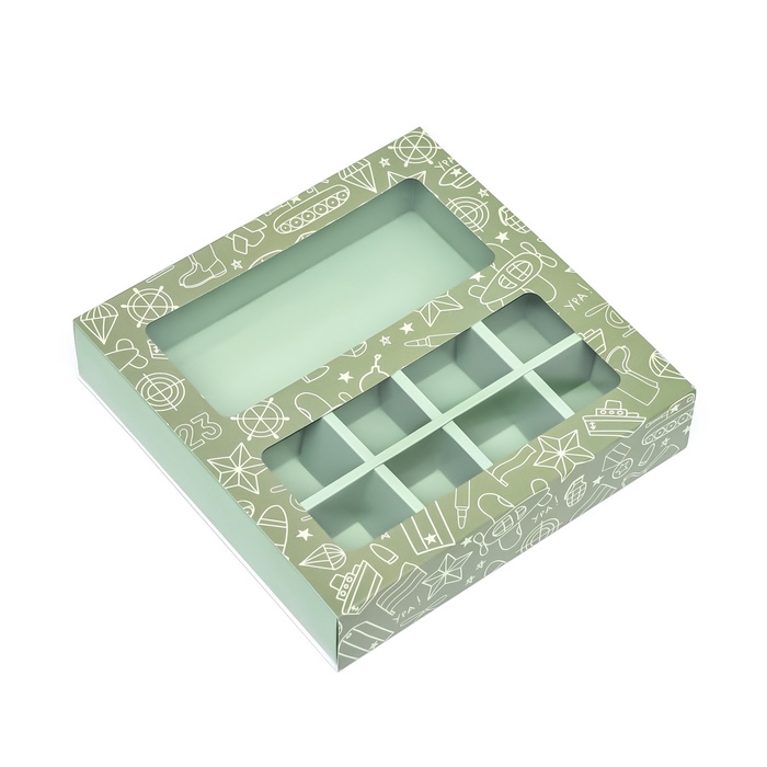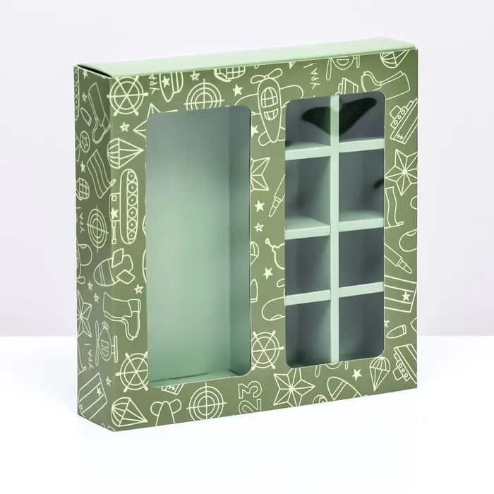 Коробка для 8 конфет шоколад, с окном, «Военный стиль» 17.7×17.8×3.8 см — Характеристики