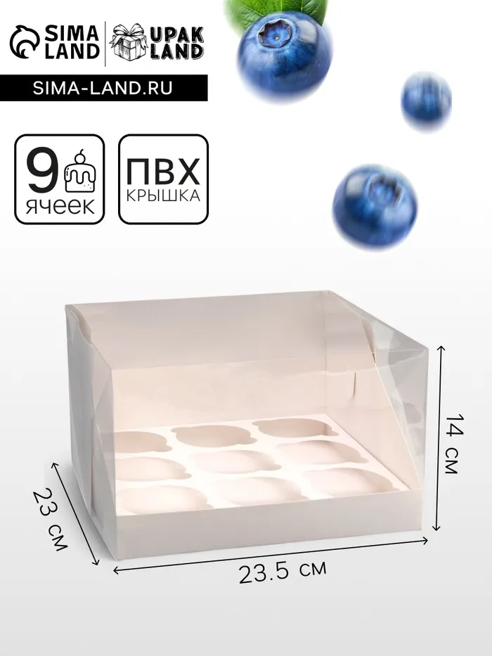 Коробка для 9 капкейков белая 23.5×23×14 см — Характеристики