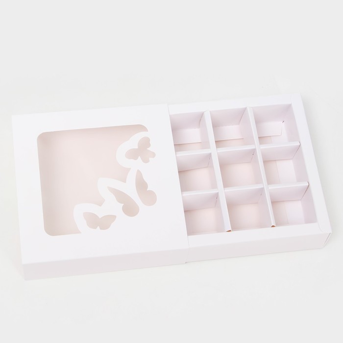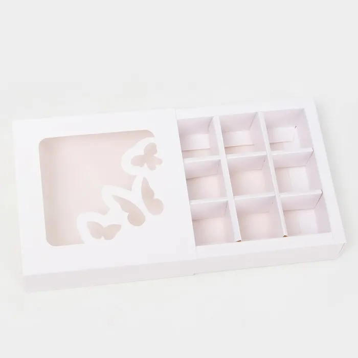 Белый цвет коробки придает ей элегантный и классический вид, а вырубка в виде бабочек добавляет нотку оригинальности и красоты. Это делает ее подходящей для различных событий, включая детские праздники, дни рождения и корпоративные мероприятия.