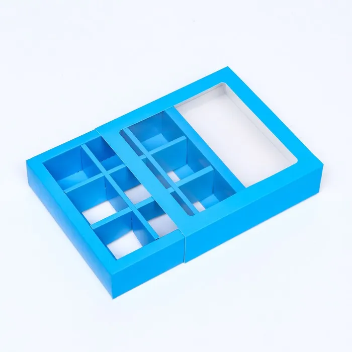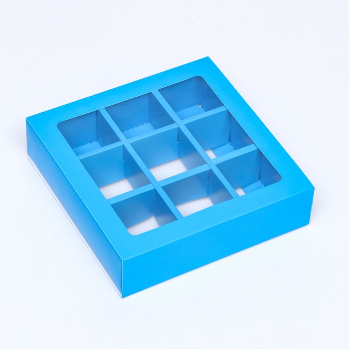 Коробка для 9 конфет, голубой, 13.7×13.7×3.5 см — Характеристики