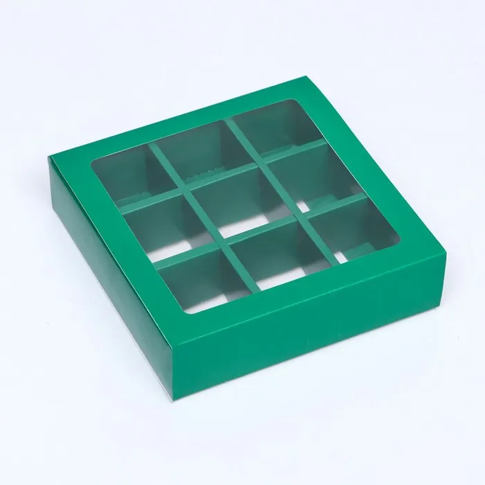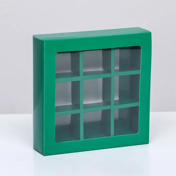Коробка для 9 конфет, изумрудная, 14.5×14.5×3.5 см — Характеристики