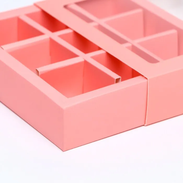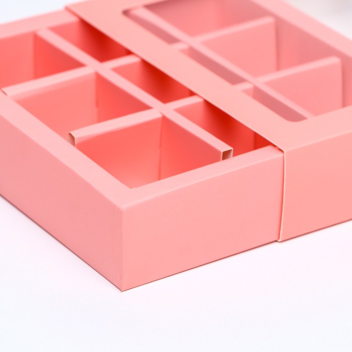 Коробка для 9 конфет, розовый, 14.5×14.5×3.5 см