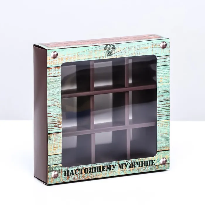 Коробка для 9 конфет с обечайкой, «Стратегический запас» 13.8×13.8×3.8 — Характеристики