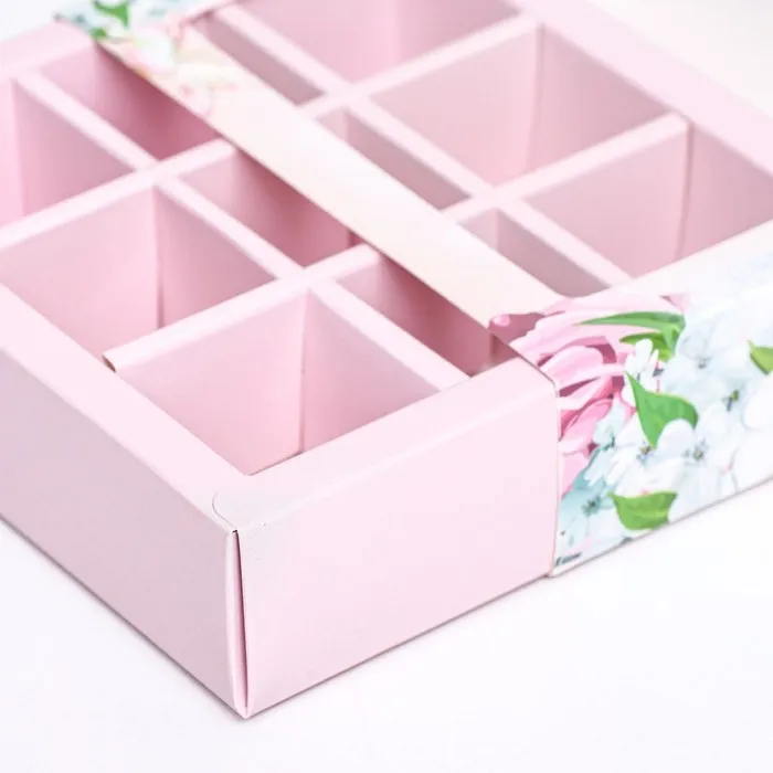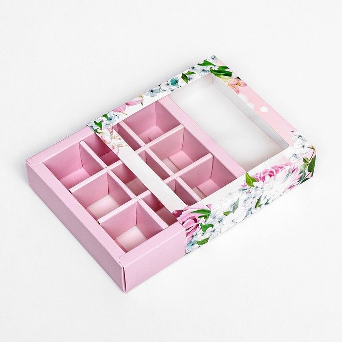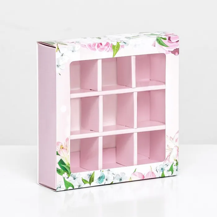 Коробка для 9 конфет, «Цветы» 13.8×13.8×3.8 см — Характеристики