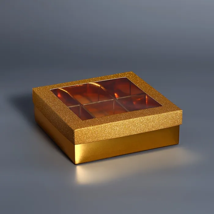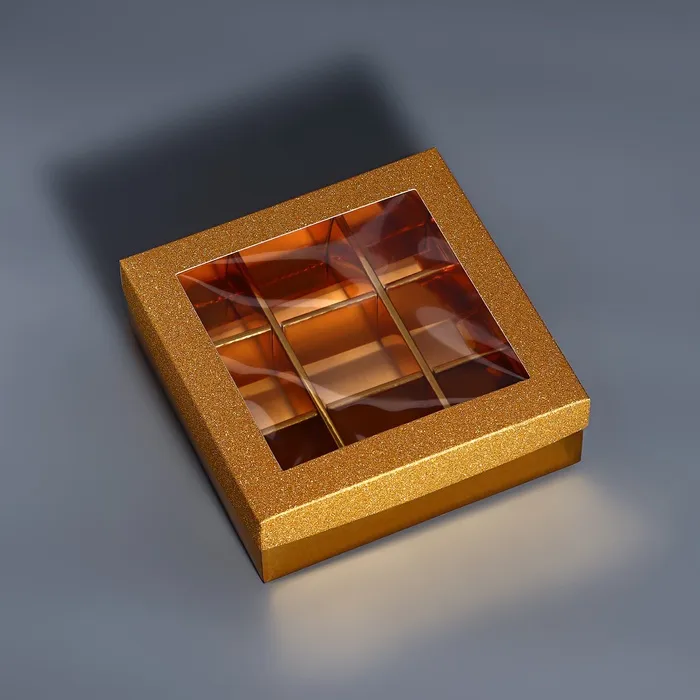 Коробка для 9 конфет золото глиттер, 12.5×12.5×4 см. Кондитерская упаковка — Характеристики