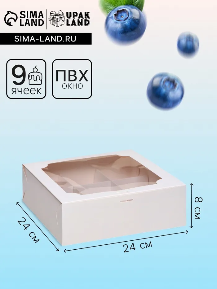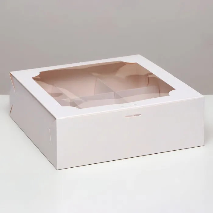 Коробка для 9 пирожных, белая, 24×24×8 см — Характеристики