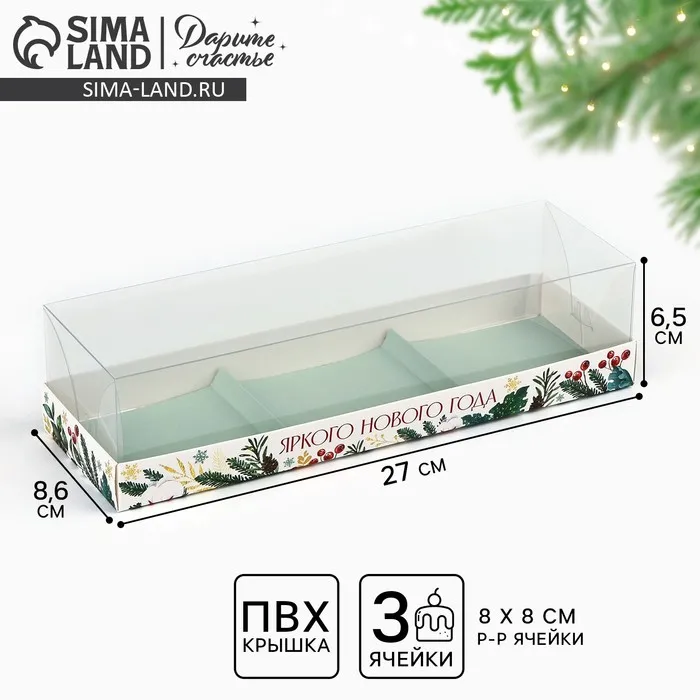 Коробка для для муссовых пирожных «Яркого Нового года», 27 х 8.5 х 6.5 см — Характеристики