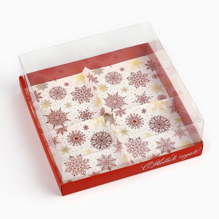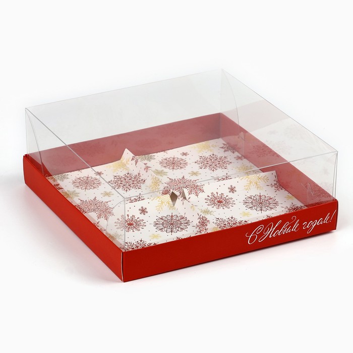 Коробка для для муссовых пирожных «С Новым годом», снежинки, 17.8 х 17.8 х 6.5 см — Характеристики