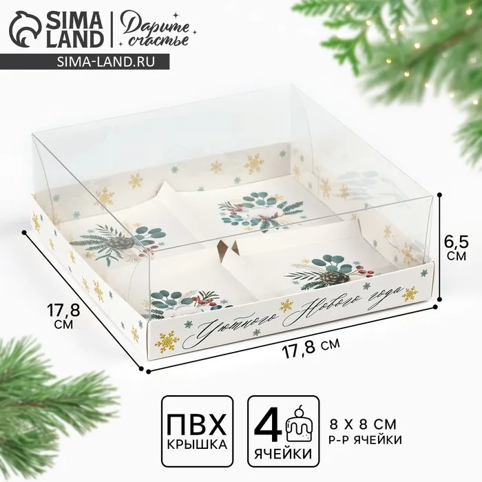 Коробка для для муссовых пирожных «Уютного Нового года», 17.8 х 17.8 х 6.5 см — Характеристики