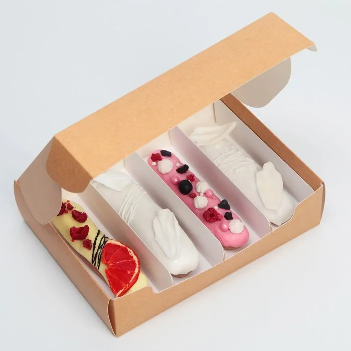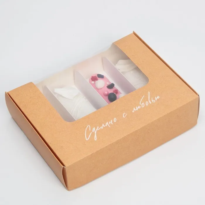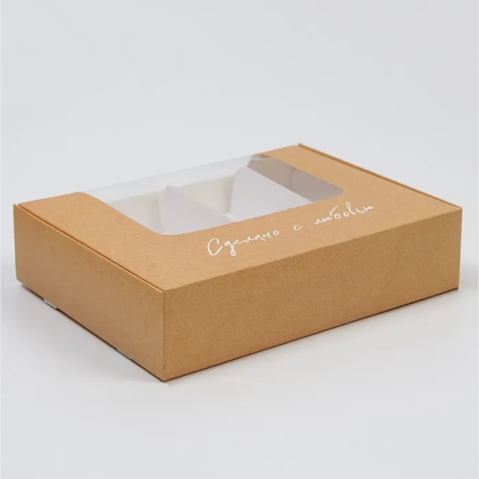 Коробка для эклеров, кондитерская упаковка, 4 вкладыша, «Сделано с любовью», 20 х 15 х 5 см — Характеристики