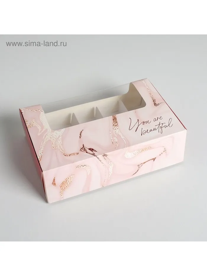 Коробка для эклеров, кондитерская упаковка, 5 вкладышей, You are Beutiful, 25.2 х 15 х 7 см — Характеристики