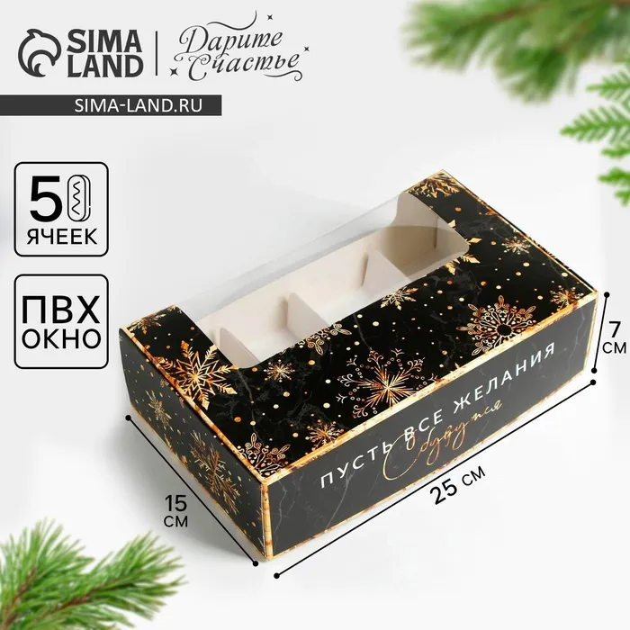 Коробка для эклеров с вкладышами «Пусть сбудутся желания», 25,2 х 15 х 7 см — Характеристики