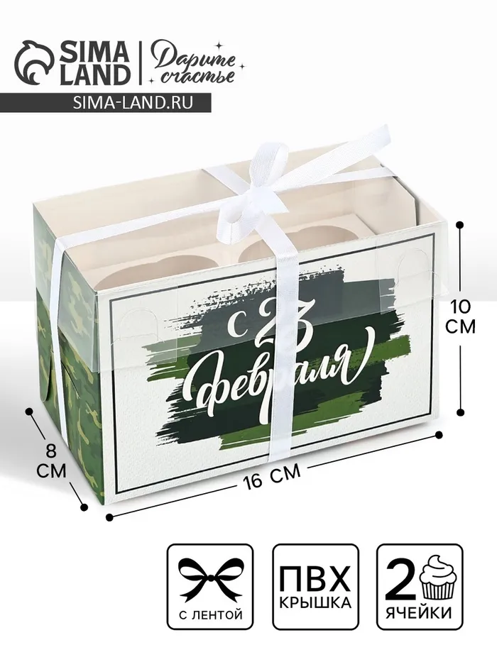 Коробка для капкейка «23 февраля», 16 х 8 х 10 см — Характеристики