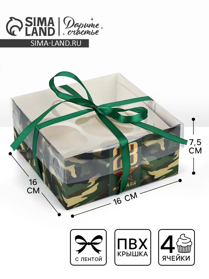 Коробка для капкейка «23 февраля», 16×16×7.5 см — Характеристики