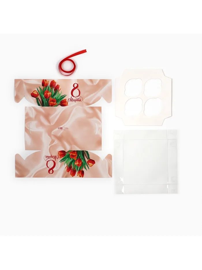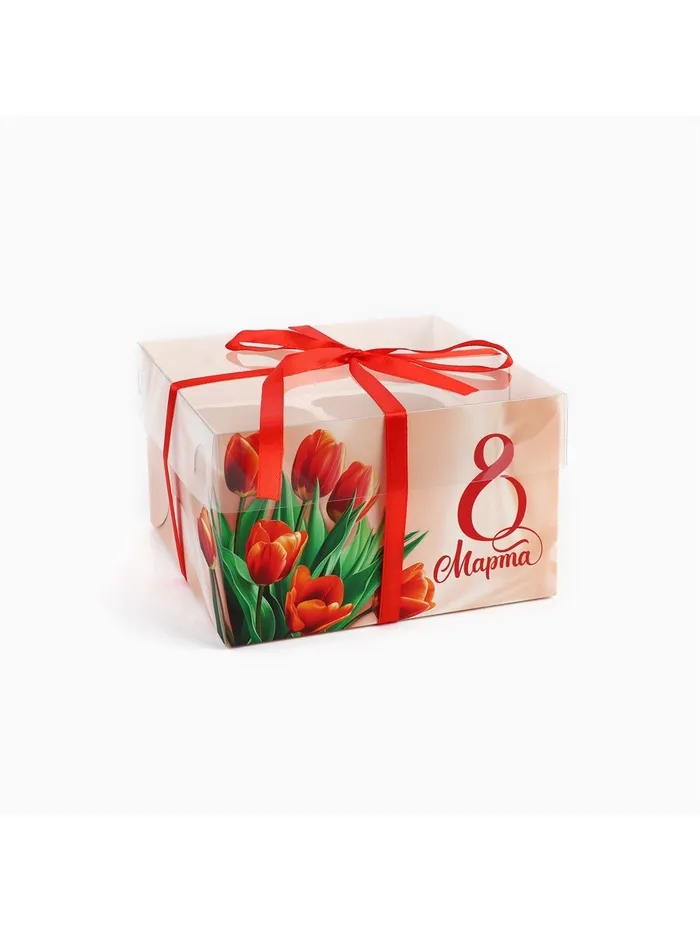 Коробка для капкейка «8 марта», 16 х 16 х 10 см — Характеристики