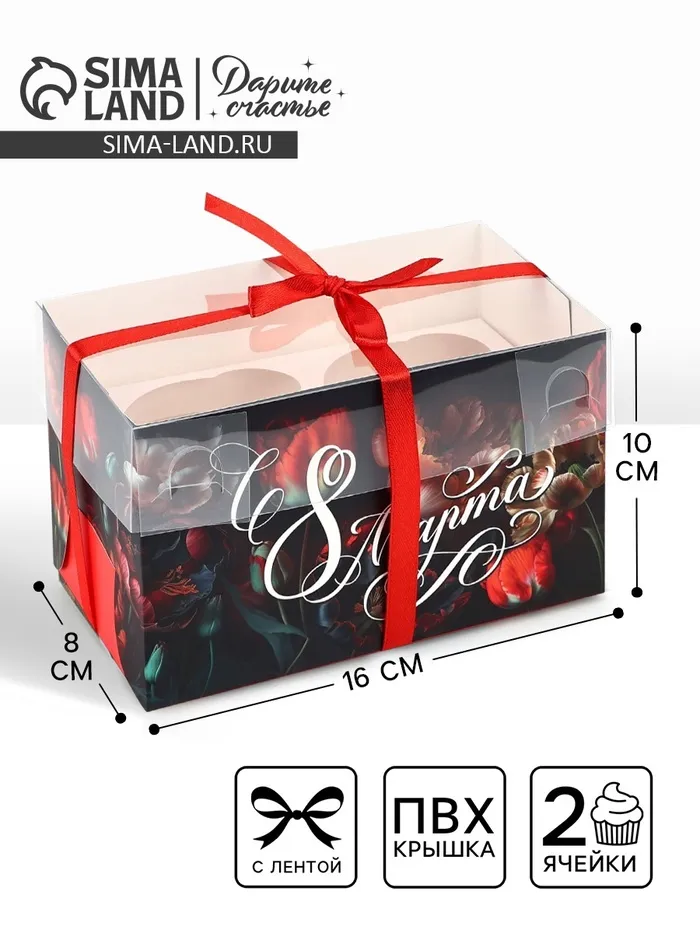 Коробка для капкейка «8 марта», 16 х 8 х 10 см — Характеристики