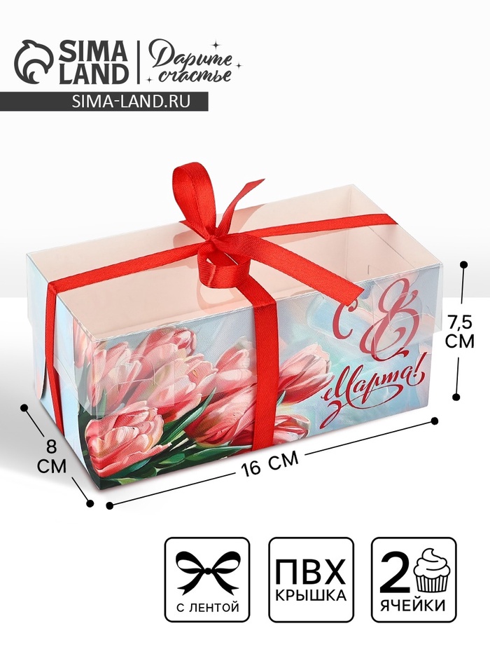 Коробка для капкейка «8 марта», 16 х 8 х 7.5 см — Характеристики