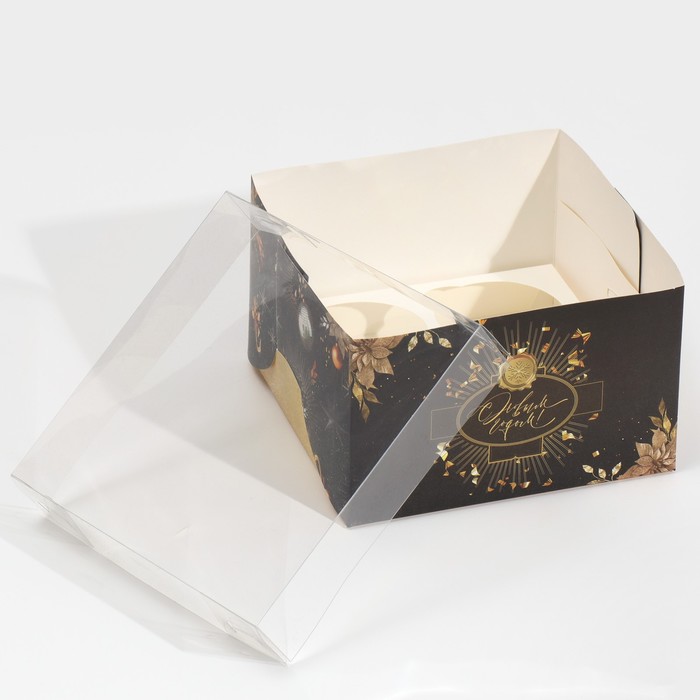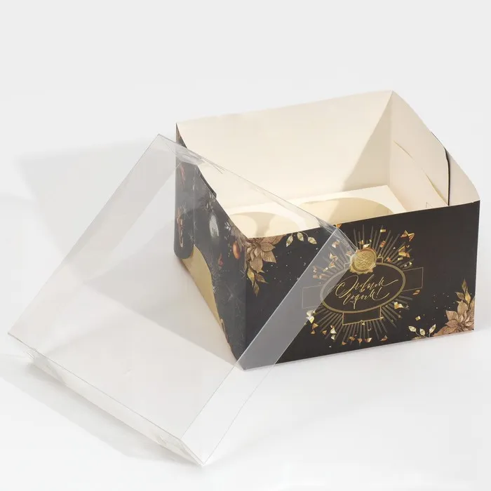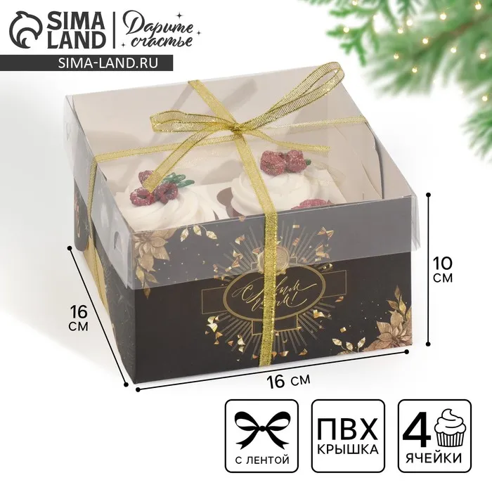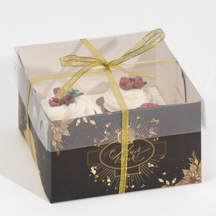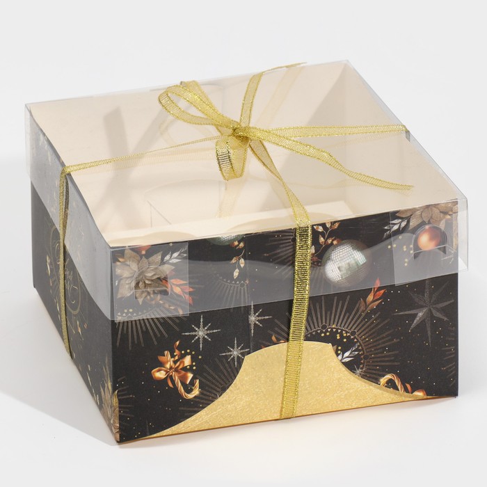 Коробка для капкейка «Чёрно-золотой», 16×16×10 см — Характеристики