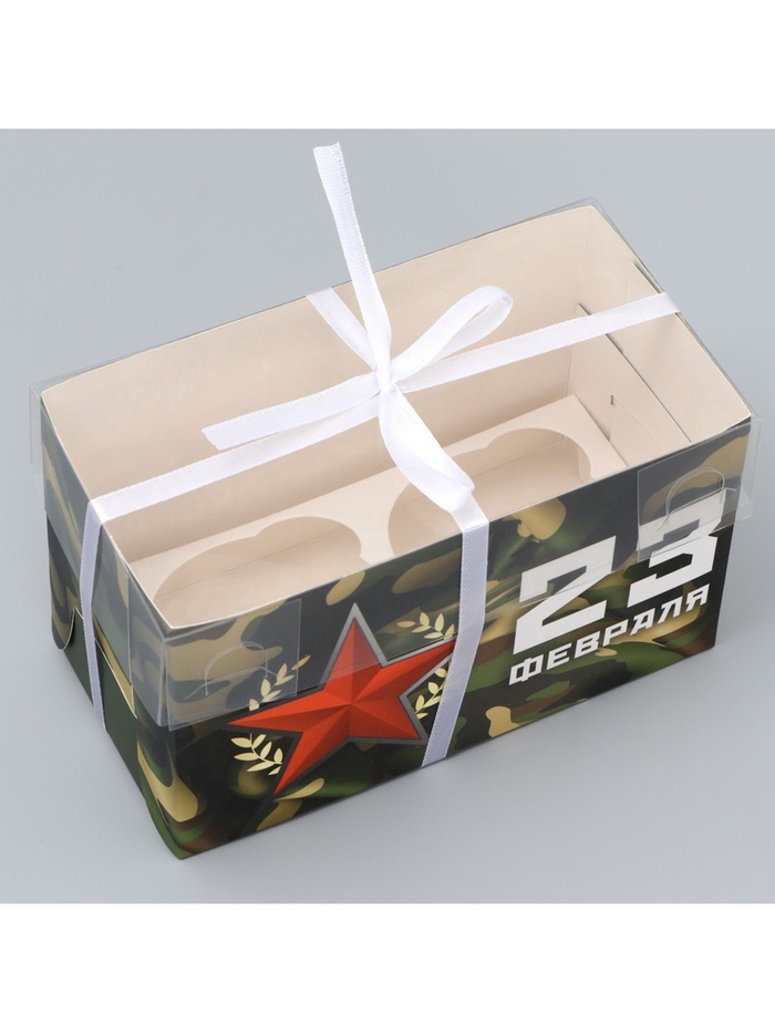 Коробка для капкейка, кондитерская упаковка, 2 ячейки, «23 февраля», 16 х 8 х 10 см — Характеристики