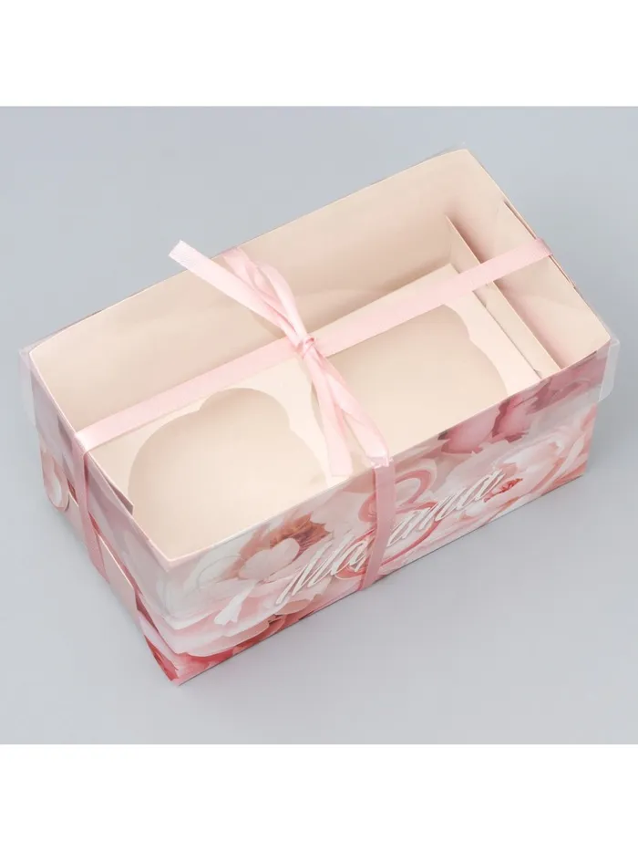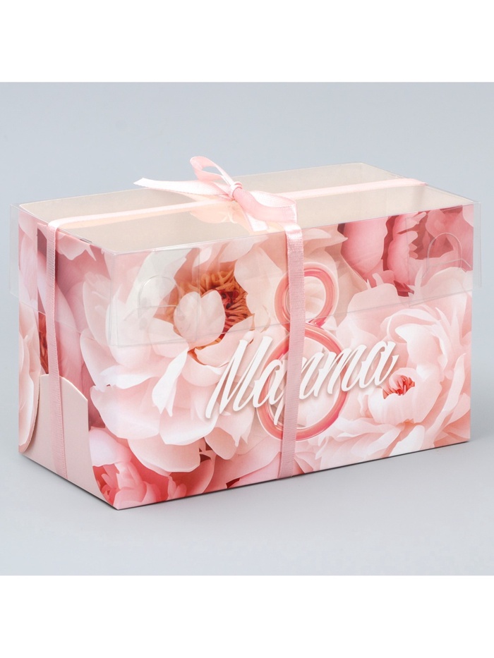 Коробка для капкейка, кондитерская упаковка, 2 ячейки «8 марта», 16 х 8 х 10 см — Характеристики
