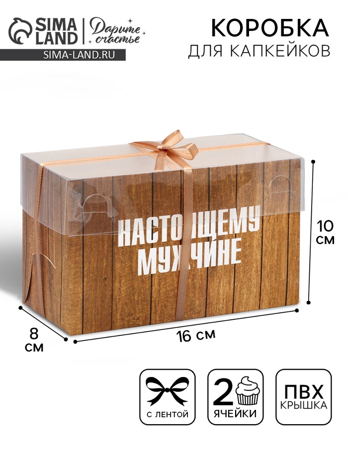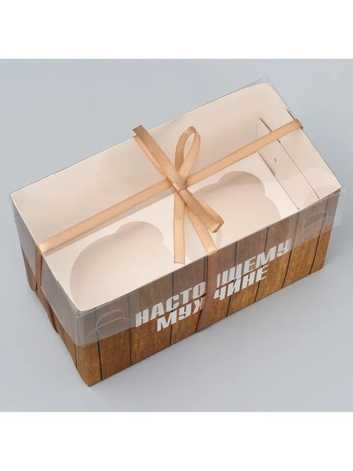 Коробка для капкейка, кондитерская упаковка, 2 ячейки «Самому лучшему», 16 х 8 х 10 см — Характеристики