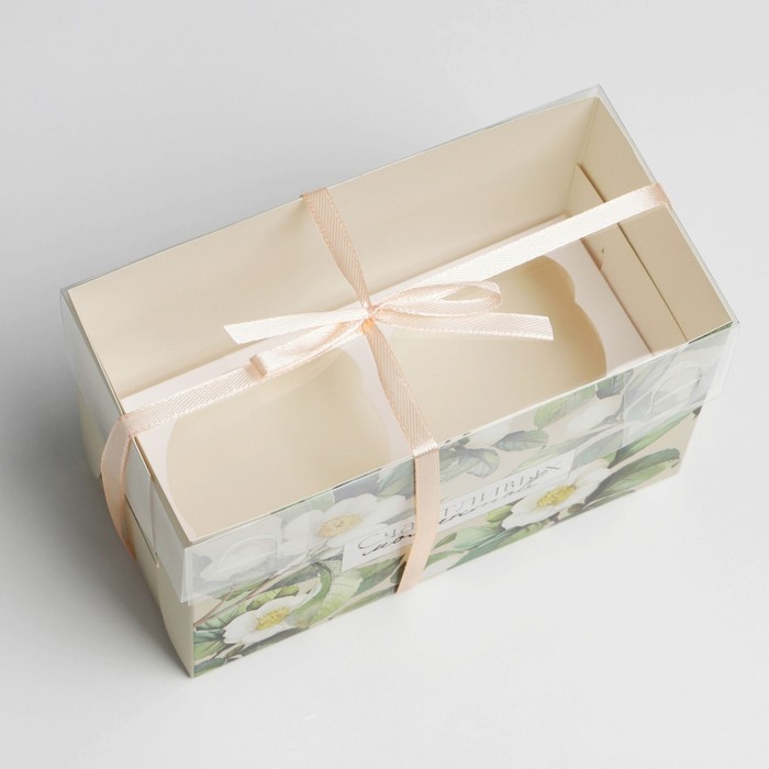 Коробка для капкейка, кондитерская упаковка, 2 ячейки «Счастливых моментов», 16 х 8 х 10 см — Характеристики