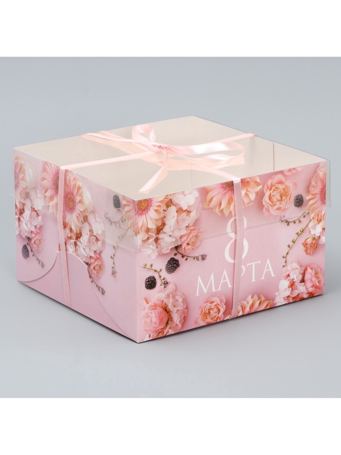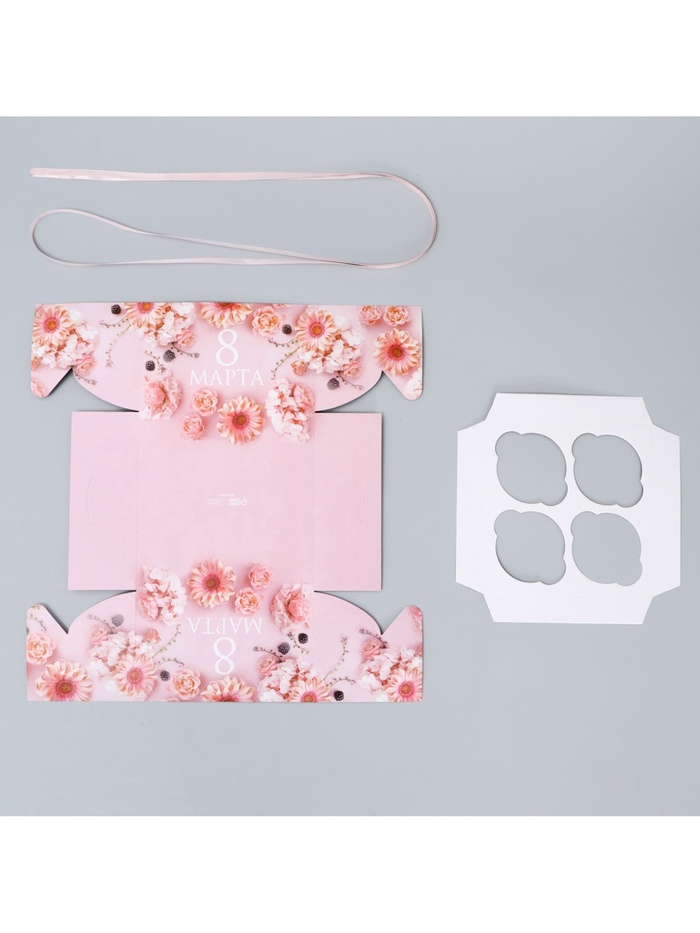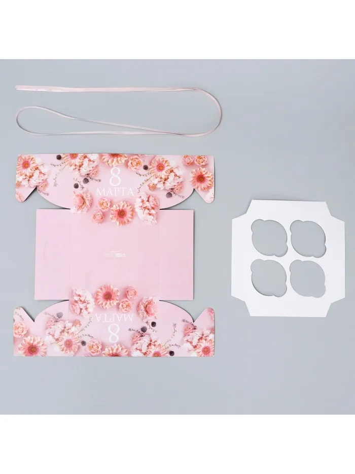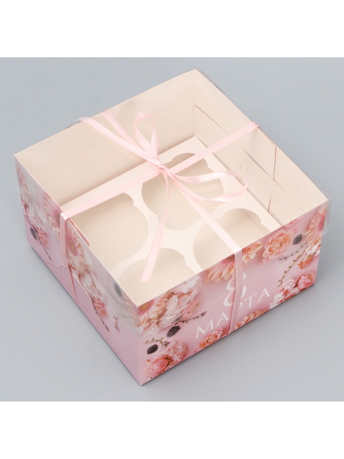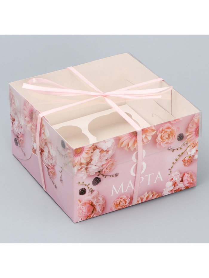 Коробка для капкейка, кондитерская упаковка, 4 ячейки «8 марта», 16 х 16 х 10 см — Характеристики