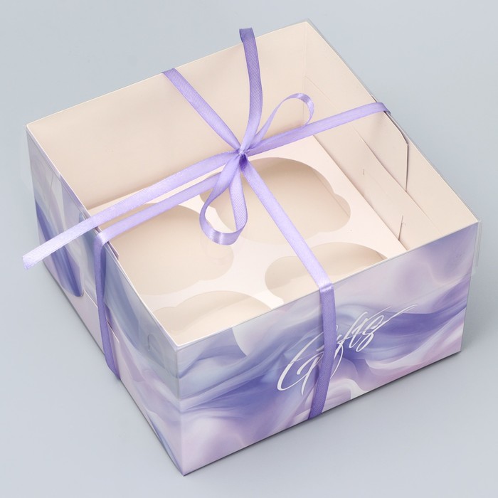 Коробка для капкейка, кондитерская упаковка, 4 ячейки «Шёлк», 16 х 16 х 10 см — Характеристики